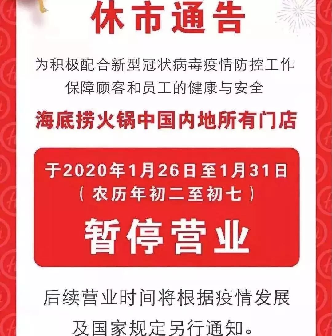 就連餐飲行業(yè)的服務(wù)楷模,24小時(shí)不休的海底撈也宣布暫停營(yíng)業(yè)。